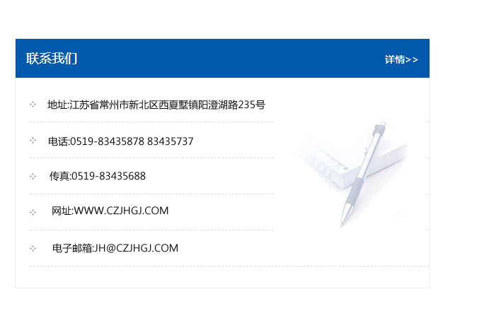 地址:常州市新北區友邦商務大廈1幢16、17層  電話:0519-85101652  傳真:0519-85112595  郵編:213022  網址:www.cz-jiayue_cn.galacte.com  郵箱:xiajifengaa@163.com